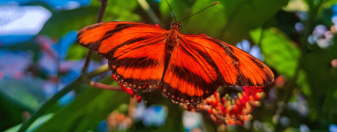 /en BLOGUna Dryadula phaetusa se alimenta del néctar de una flor de Odontonema, mostrando la estrecha relación entre plantas y mariposas. Estas interacciones son parte de todos nuestros recorridos educativos.