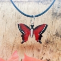 Nuestros collares de cuero están disponibles en una variedad de colores vibrantes, incluyendo azul, rojo, verde, morado y rosado. Elige el color que mejor se adapte a tu estilo o complementa tu atuendo para llevar contigo la belleza de una mariposa en un collar. Cada collar cuenta con una figura completa de una mariposa, pintada a mano con detalles asombrosos y meticulosos. Son cómodos de usar y perfectos para complementar cualquier atuendo diario o especial. Con cierre de metal resistente, puedes estar seguro de que este collar se mantendrá seguro en su lugar todo el día. ¡Agrega un toque de color a tu estilo con nuestros collares de cuero pintados a mano!