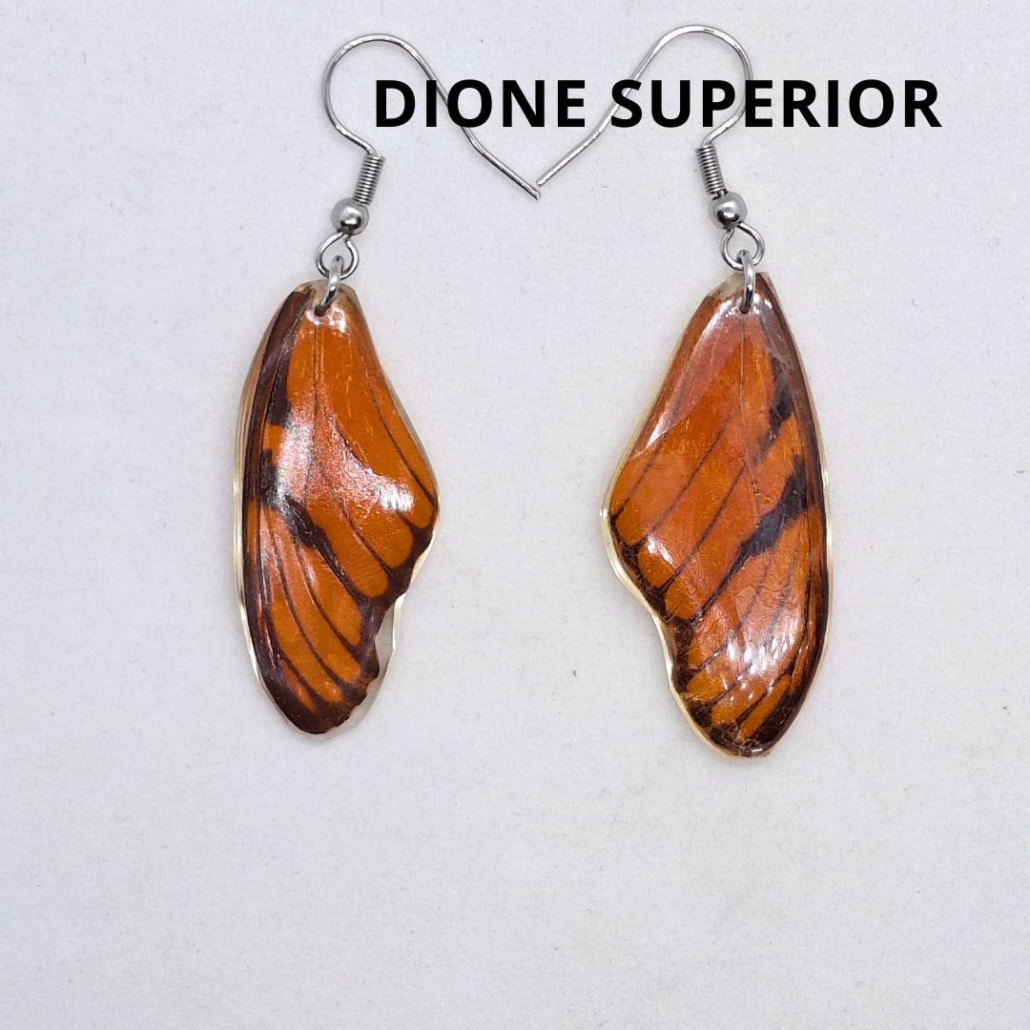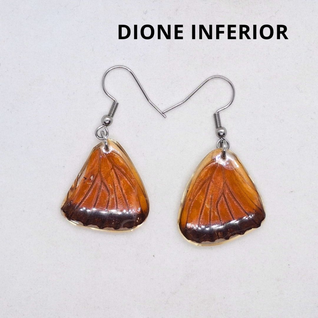 Cada par de nuestros aretes está elaborado con alas reales de Dione juno, una mariposa de tonos anaranjados vibrantes con delicados bordes negros y manchas blancas que resaltan su elegancia tropical. Su diseño refleja la energía del sol y la vitalidad de los ecosistemas cálidos de Costa Rica.
