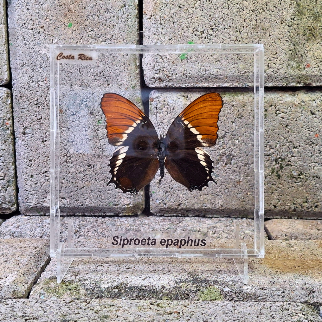 Nuestro cuadro de mariposa Epaphus es una elección refinada y única para quienes aprecian la biodiversidad tropical. En él, la mariposa Siproeta epaphus, reconocida por el contraste de sus alas marrones y anaranjadas, ha sido preservada cuidadosamente mediante un proceso que asegura su durabilidad y mantiene intactos los detalles naturales de sus patrones. El marco acrílico de alta calidad, completamente transparente, protege la mariposa y permite admirarla desde todos los ángulos, resaltando su belleza en toda su esencia.