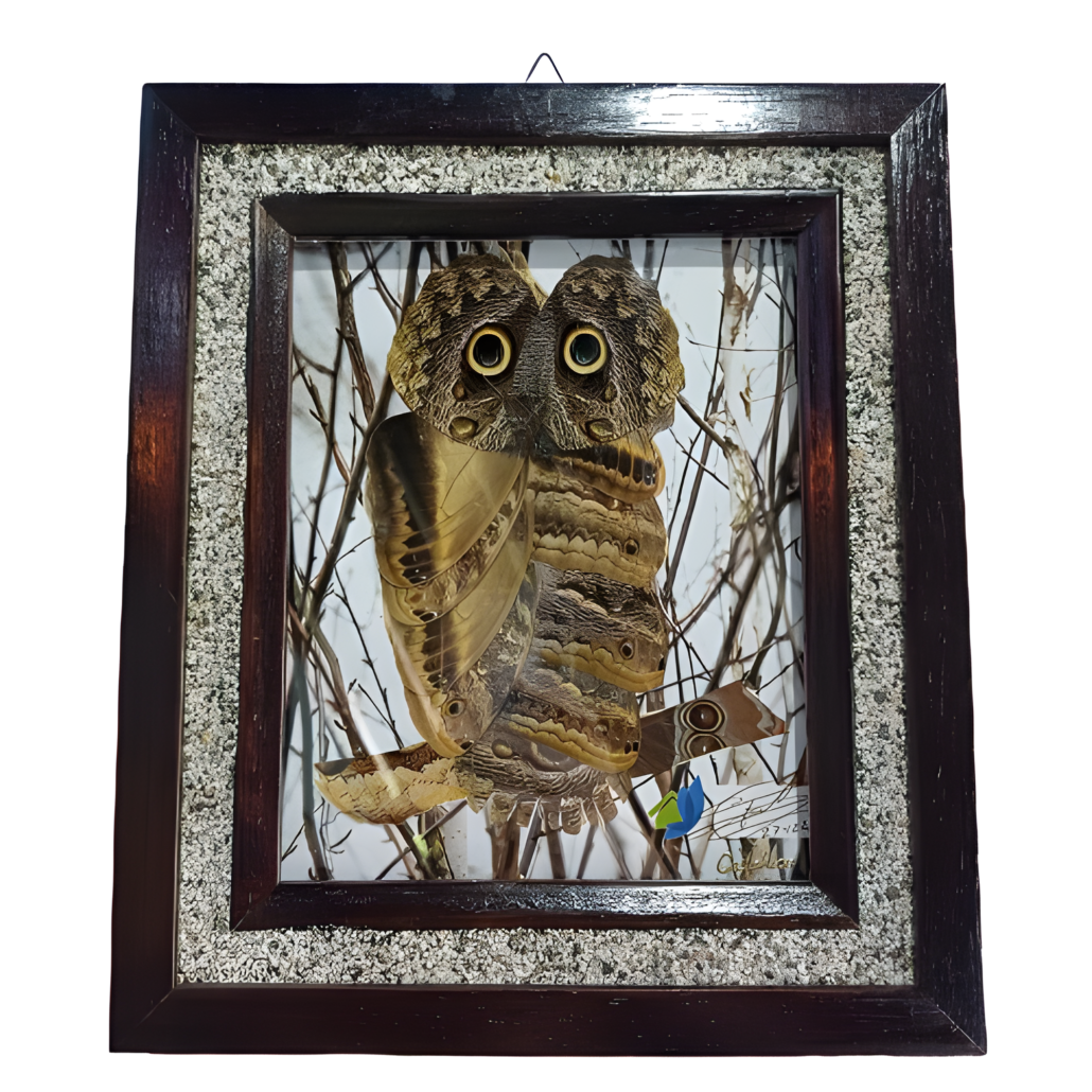 Si estás buscando una manera única de decorar tu hogar mientras ayudas al medio ambiente, nuestro cuadro de búho hecho con alas recicladas es la opción perfecta. Este cuadro es una obra de arte única y elegante, hecho a mano con alas recicladas de varias especies de mariposas. El cuidadoso proceso de creación asegura que cada detalle del búho sea capturado y mostrado en la perfección. Además, el cuadro está hecho con madera de alta calidad y vidrio para proteger la pieza de cualquier daño. Con un tamaño de 24x28cm, es lo suficientemente grande para ser el centro de atención en cualquier habitación. Pero no solo es un hermoso adorno, sino que también es una opción sostenible para la decoración de tu hogar. ¡Agrega este cuadro único a tu colección y siente la satisfacción de saber que estás haciendo tu parte por el planeta!
