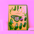 Este póster decorativo en lienzo presenta de forma clara y artística el fascinante ciclo de vida de la mariposa Monarca (Danaus plexippus), desde el huevo hasta la mariposa adulta. Su diseño combina ilustración científica con un estilo visual vibrante, destacando un fondo verde brillante y detalles llenos de color como las alas en tonos naranja y negro y elementos florales.